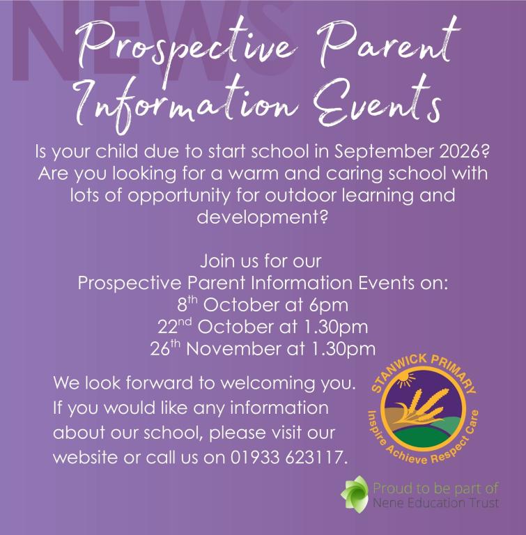 If you would like to visit our school for a tour please contact the school office team on 01933 623117.